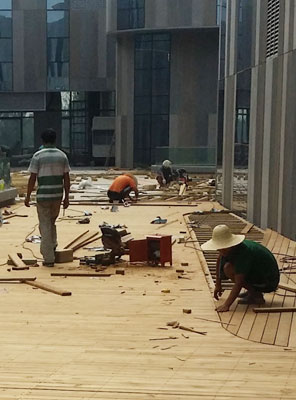 木質(zhì)座椅打造一片休憩的空間,布藝的抱枕,溫馨的燈光,給人內(nèi)心充盈的舒適和溫暖感覺!置身其中,放松心情,整個(gè)人都沉靜下來!自家若有個(gè)大庭院,木平臺(tái)的規(guī)劃讓花園更具人文氣息,木地板、木柵欄、木樓梯、木亭廊……起到藝術(shù)的裝飾作用,同時(shí)布置一些照明燈具,夜晚的庭院更顯沉穩(wěn)和品味。 防腐木產(chǎn)品誰來施工? 庭院剛施工完成,柳岸木的葡萄架開裂了?  開車去現(xiàn)場看了一下,做好的葡萄架木質(zhì)很松、裂口很大,可以確定開裂的原因:用的不是柳桉而是松木的一種,但是具體是哪一類松木也分辨不出來,裂縫產(chǎn)生主要原因是木頭沒有烘干,含的水分很多,經(jīng)過風(fēng)吹日曬,木頭中的水分蒸發(fā)發(fā)生收縮變形而產(chǎn)生裂縫,把木頭換掉基本是不可能了,唯一的解決辦法就是等裂縫穩(wěn)定以后用膩?zhàn)犹顫M重新做油漆。  事情解決了,正好業(yè)主也在,就問他簡單溝通了下,了解了一下情況,幫他做花園的是找上門來的一個(gè)施工隊(duì),柳桉防腐木地板3公分厚280元/平方,葡萄架報(bào)價(jià)500元/平方,就業(yè)主算了一筆賬,正宗柳桉木現(xiàn)在市場價(jià)按5000元一立方計(jì)算,不算損耗,一立方可以做33個(gè)平方地板,每平方是150元,木工安裝費(fèi)市場行情是60元/平方,油漆30元/平方,加上地板下的木楞50元/平方加起來就是290元/平方,再加上損耗和正常的公司利潤,280元/平方的柳桉防腐木地板怎么能做的出來呢